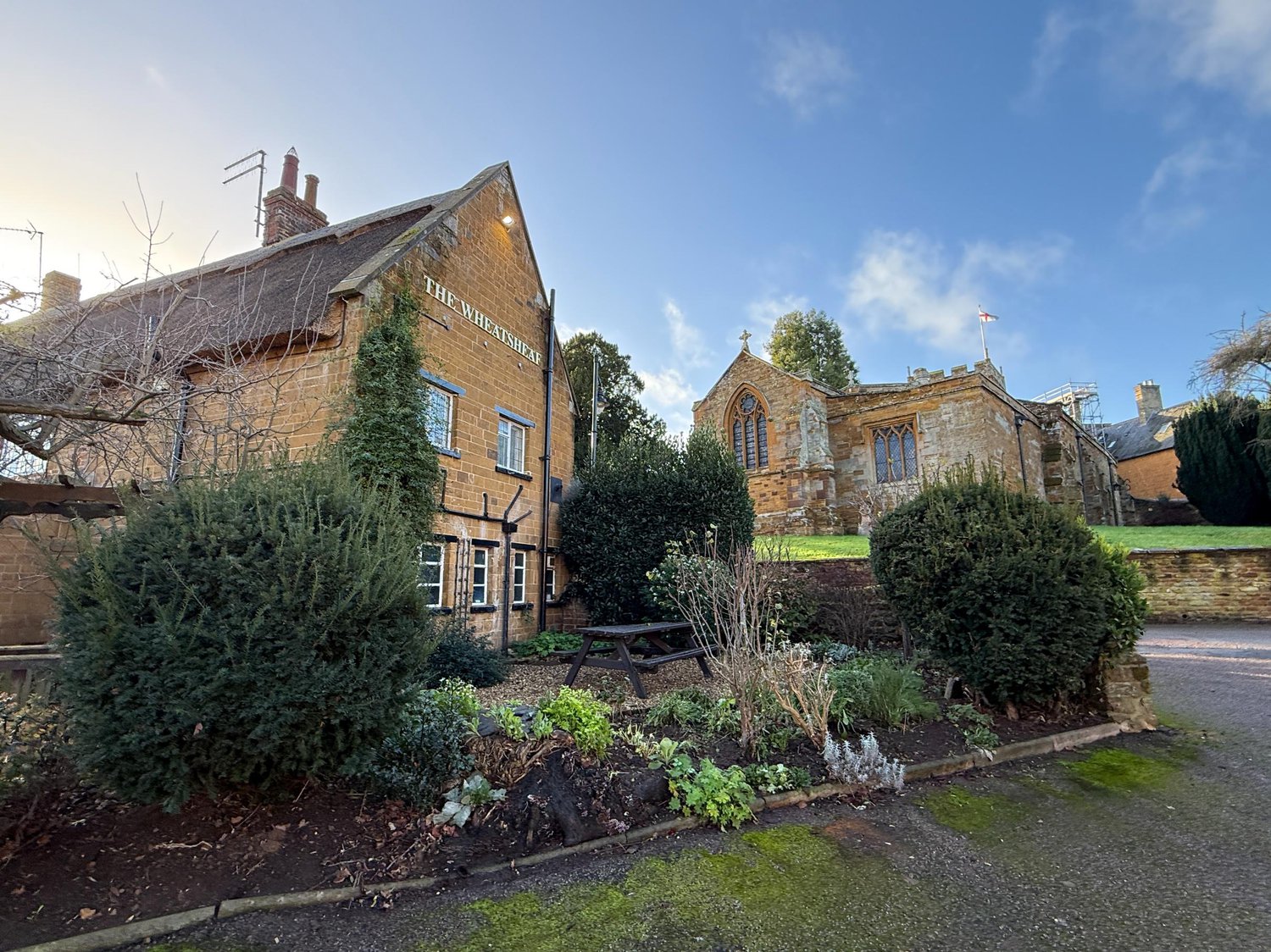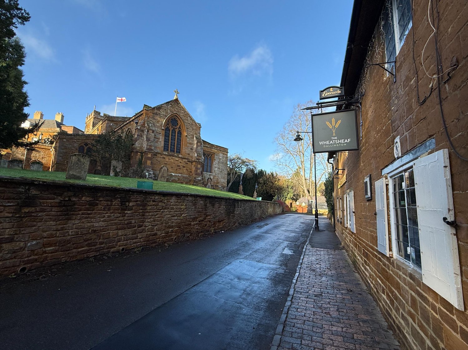 Close your eyes and think of a traditional quintessential British pub – that's The Wheatsheaf. Sitting opposite the beautiful St. Mary's church, on a quiet road, it is well positioned in the heart of Dallington in Northamptonshire.